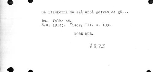 //// Se flickorna de små uppå golvet de gå... Ds. Valbo hd. //// E.U. 19143. Yisor, III. s. 109. //// NORD MUS. //// J //// t ////