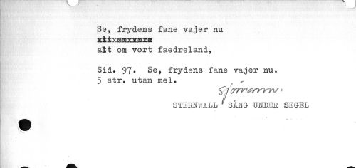 //// Se, frydens fane vajer nu //// X±±X®31X3naXS[ //// alt om vort faedreland, //// Sid. 97. Se, frydens fane vajer nu. 5 str. utan mel. f ~ //// <fj OVVtifrYYyv > //// STERNWÅLL ' SÅNG UNDER SEGEL ////