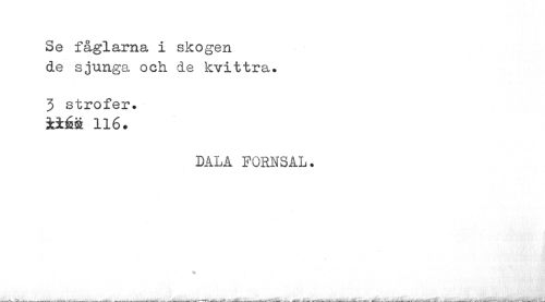 //// Se fåglarna i skogen de sjunga och de kvittra. //// 3 strofer, »éä 116. //// DALA FORNSAL. //// % //// ___ ,<|r ^ M___ ___ ___——— -——--- ////