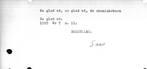 //// ¦ » //// Se glad ut, se glad ut, du människobarn //// Se glad ut. 1920 Ur 7 s. 11. //// DALKULLAN. //// S //// % ////