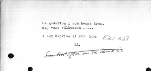 //// Se godafton i som hemma ären, maj vare välkommen ... //// 4 //// A 442 Majvisa 21 str. kom. é~~lc/ /g J //// RA. //// 0 ////