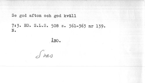 //// Se god afton och god kväll //// 7:3. HO. 3.L.S. 508 s. 36I-363 nr 139. N. //// ÅBO. //// cf^ ////