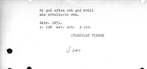 //// Si god afton och god kväll min utvaldaste vän. //// Sktr. 1851. //// s. 148 mel. not. 4 str. //// SVÅNFELDT VISBOK //// 0 ////