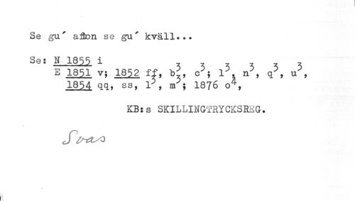 //// Se ga' afton se gu' kväll... //// Ses N 1855 i //// E v; 18^2 ff, V, c5; l5. n5, q5, u5, //// 1854 qq, ss, , nT; 1876 o4, //// KBjs SKILLINGTRYCKSREG. //// J&aso //// t ////