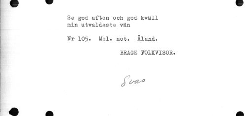 //// Se god afton och god kväll min utvaldaste vän //// Nr 105» Mel. not. iland. //// BRAGE FOLKVISOR. ////