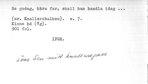 //// Se godag, kära far, skall han handla idag ... L //// (ur. Knallarebalken). s. 7* Kinne hd (Vg). //// 901 fol. ! //// i 1 //// f 1 //// IFGH. //// i j //// i j ////