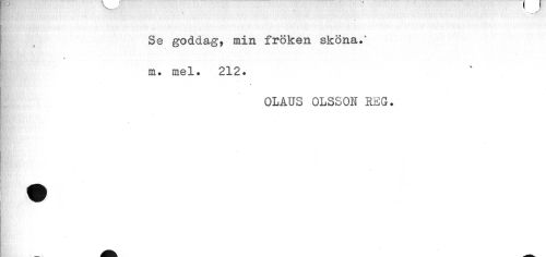 //// m: //// Se goddag, min fröken sköna/ //// w //// m. mel. 212. //// OLAUS OLSSON REG. //// i w ////