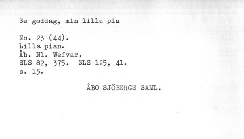 //// Se god dag, min lilla pia //// Ko. 23 (44)• //// Lilla pian. ib. NI. Wefvar. //// SLS 82, 375• SLS 125, 41• //// s. 15* //// abo SJÖBERGS SAML. //// * ////