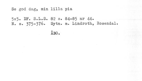 //// Se god dag, min lilla pia //// 5:5. DF. S.L.S. 82 s. 84-85 nr 44. //// N. s. 375-376. Sytn. m. Lindroth, Rosendal. //// ÅBO. ////
