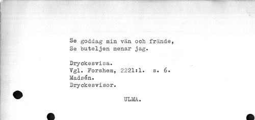 //// Se goddag min vän och frände, Se buteljen menar jag. //// Dryckesvisa. //// Vgl. Forshem, 2221:1. s. 6. //// Madsén. //// Dryckesvisor. //// ^ ULMA. ////