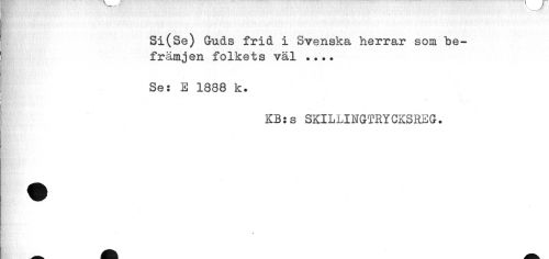 //// Si(Se) Guds frid i Svenska herrar som be-främjen folkets väl ... //// Se: E 1888 k. //// KB:s SKILLINGTRYCKSREG. ////