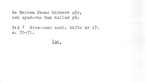 //// Se Herren Jesus härnere går, och syndarna han kallar på. //// 9:4 ? Svenssons saml. häfte nr 17* s. 70-71. //// <* //// ÅBO. ////