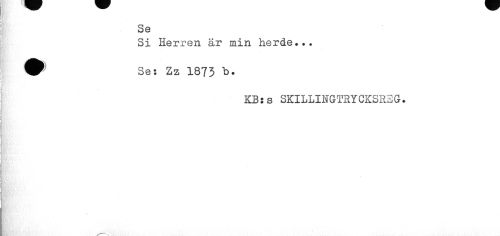 //// Se //// Si Herren är min herde... Se: Zz 1873 b. //// KB:s SKILLINGTRYCKSREG. ////