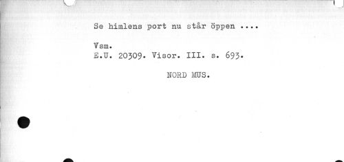 //// Se himlens port nu står öppen ... Tsm. //// E.U. 20309. Visor. III. s. 693. //// HORD MS. //// % ////