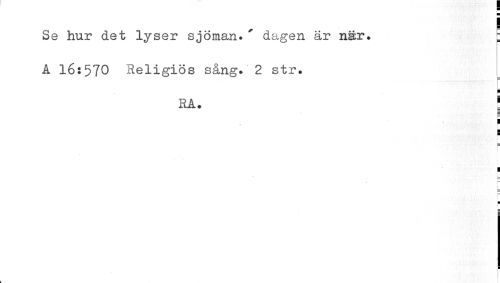 //// i //// Se hur det lyser sjöman.' dagen är när. : //// A 16:570 Heligiös sång. 2 str. //// ¦ //// RA. I //// i : //// •« . , , » F //// r | //// r — //// ¦ ////