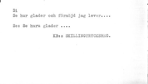 //// ¦ //// Si i //// I //// Se hur gläder och förnöjd jag lever... //// i //// Se: Se huru gläder ... i //// KB:s SKILLINGTRYCKSREG. //// i //// i i //// i ////