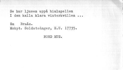 //// Se hur ljusen uppå himlapellen I den kalla klara vinterkvällen ... //// ' ;V .' i //// Sm Braås. //// Mskpt. Soldatsånger, E.U. 17735» //// wrd ms. //// ? i ////