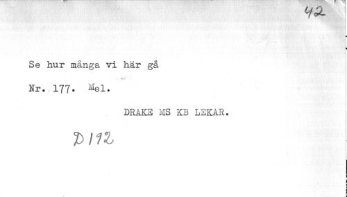 //// \ //// ¦ //// _ //// I //// Se hur många vi här gå //// M //// Nr..177. Mel. //// i //// DRAKE MS KB LEKAR. //// T> 111 ////