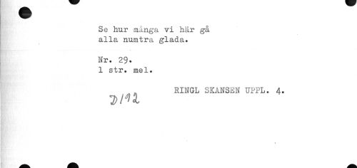 //// É m //// v w //// Se hur mänga vi här gå //// U^i.yr . //// alla numtra glada. //// * //// Nr. 29. 1 str. mel. //// RINGL SKANSEN UPPL. 4. //// Din //// 0 //// — ^^ ^ ////