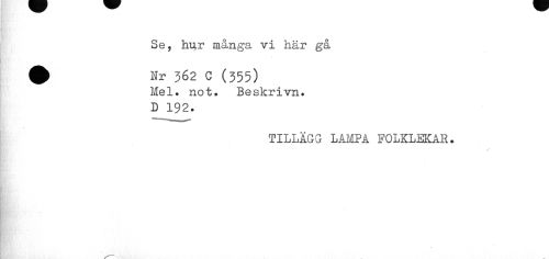 //// Se, hur många vi här gå //// Nr 362 C (355) //// Mel. not. Beskrivn. D 192. //// TILLÄGG LAMPA FOLKLEKAR. ////