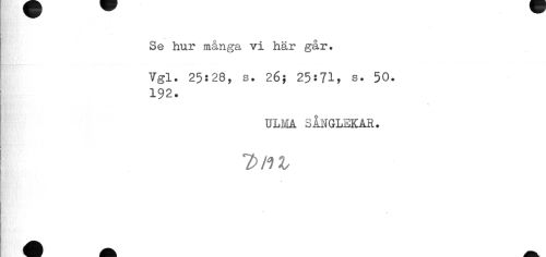 //// Se hur många vi här går. //// Vgl. 25s 28, s. 26} 25:71, s. 50. 192. //// t //// ULIvIA SÅNGLEKAR. //// 7>ht ////
