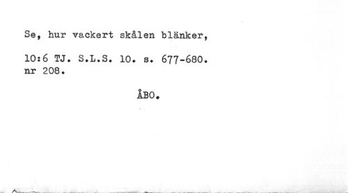 //// Se, hur vackert skålen blänker, //// 10:6 TJ• S.L.S. 10. s. 677-680. nr 208. //// ÅB0# ////