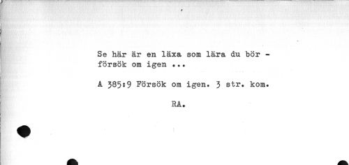 //// v //// Se här är en läxa som lära du bör -försök om igen ••. //// A 385:9 Försök om igen. 3 str. kom. //// RA. ////
