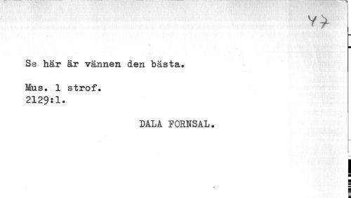 //// Se här är vännen den bästa. //// Mus. 1 strof. 2129:1. //// DALA FOBHSAL. //// * ////