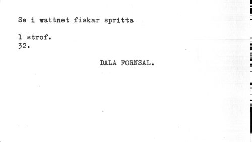 //// I ¦ //// Se i vattnet fiskar spritta j" //// 1 strof. //// 32. j //// DALA FORNSAL. ! //// \ r //// - r //// [ //// m ////