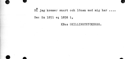 //// Si jag kommer snart och lönen med mig har //// Se: Zz 1851 e; 1858 i, //// KB:s SKILLIHGTRYCKSREG• ////