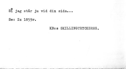 //// Si jag står ju vid din sida*.» //// Se: Zz 1859 //// KB:s SKILLINGTRYCKSREG? //// \ ////