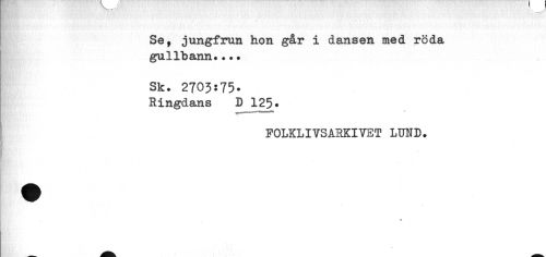 //// Sef jungfrun hon går i dansen med röda gullbann... //// Sk. 2703*75- //// Ringdans D 125» //// FOLKLIVSAHKIVET LUND. ////