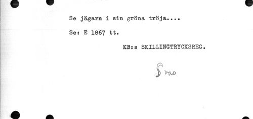 //// Se jägarn i sin gröna tröja... Se: E 1867 tt. //// KB:s SKILLINGTRYCKSREG. //// # ////