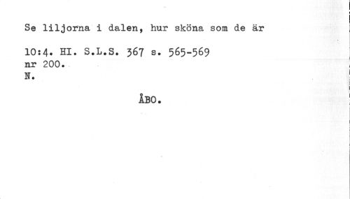 //// ¦ //// I //// Se liljorna i dalen, hur sköna som de är //// 10:4. Hl. S.L.S. 367 s. 565-569 //// nr 200. I //// H. //// i //// ÅBO. ! //// I //// r ////