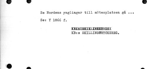 //// Se Nordens ynglingar till mötesplatsen gå ... //// Se: Y 1866 f. //// KBXXXXKXKL XK&XXRXS x //// KB:s SKILLINGffRYCKSREG. //// » ////