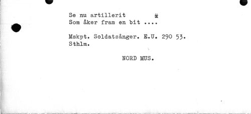 //// Se nu artillerit jg //// ^^^ Som åker fram en bit //// Mskpt• Soldatsånger. E.U. 290 53. Sthlm. //// HORD MUS. //// ¦ ////