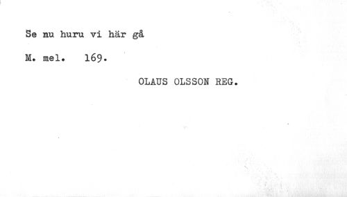 //// Se nu huru vi här gå M. mel* 169» //// OLAUS OLSSON REG. //// ? //// V ' ' ////