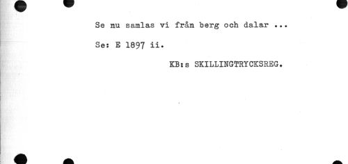 //// Se nu samlas vi från berg och dalar ... //// Se: E 1897 ii. //// KB:s SKILLINGTRYCKSREG. //// % //// % ////