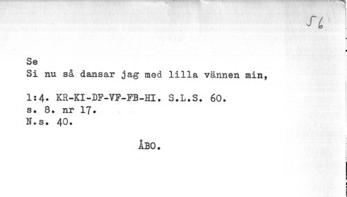 //// ¦ //// I //// Se //// Si nu så dansar jag med lilla vännen min, //// 1:4. KR-KI-DF-VF-FB-HI. S.L.S. 60. //// s. 8. nr 17* //// U.s. 40. //// ABO. //// i //// l //// a ¦ //// i ¦ //// ¦ ////