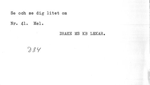 //// Se och se dig litet om Nr. 41. Mel. //// i //// j //// DRAKE MS KB LEKAR. //// i //// 4 //// I ////