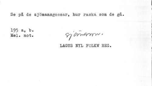 //// I //// i //// i //// Se på de sjömansgossar, hur raska som de gå. | //// * //// L i. //// 195 a, b. - //// Mel. not. 0r»*rrrr" I //// LAGUS NYL FOLKW REG. ¦ //// t f //// (t c //// i 1 //// ¦ ////