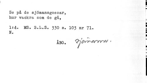 //// I //// Se på de sjömansgossar, hur vackra som de gå, //// L //// 1:4. MS. S.L.S. 330 s. 103 nr 71- 5 //// N. F //// & //// IBO. > //// " i ////