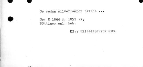 //// Se redan silverlampor brinna .•. //// . Se: E 1844 r? 1852 xx, //// Bottiger enl. Lub. //// KB:s SKILLINGT RYCKS1EG. //// « ////