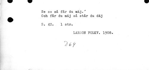 //// Se se så får du mäj.' ^^ Och får du mäj så står du däj //// S. 42. 1 str. //// LARSOH FOLKV. 1908. //// lé? ////