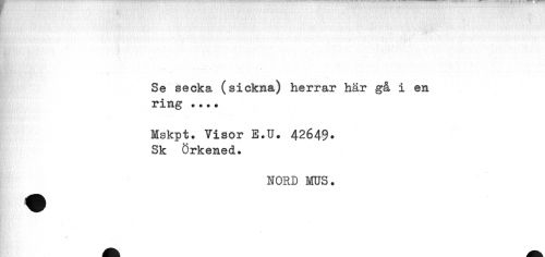 //// Se secka (sickna) herrar här gå i en ring //// Mskpt, Visor E.U. 42649* Sk Örkened» //// NORD MUS. //// p ////
