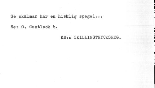 //// ¦ //// I ¦ //// Se skälmar här en hisklig spegel. //// Se: 0. Guntlack b. 5 //// KB:s SKILLINGTRYCKSREG. i //// i //// I //// i //// c //// I //// i ////