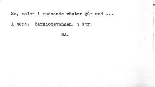 //// Se, solen i rodnande väster går ned ••• //// i //// A *4' Barndomsvännen. 5 str. //// RA. | //// r //// s f //// > //// ¦ V- ' //// * //// ¦ ////