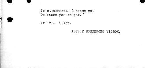 //// Se stjärnorna på himmelen, De dansa par om par.' //// \ Nr 127. 2 str. //// AUGUST BONDESONS VISBOK. ////