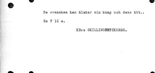 //// Se svensken han älskar sin kung och dess ätt.. Se T 16 e. //// KB: s SKILLING2HYCKSREG, ////