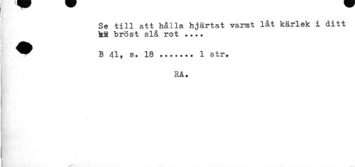 //// Se till att hålla hjärtat varmt låt kärlek i ditt fes bröst slå rot ... //// ^^ B 41> s. 18 ... 1 str» //// ra. ////